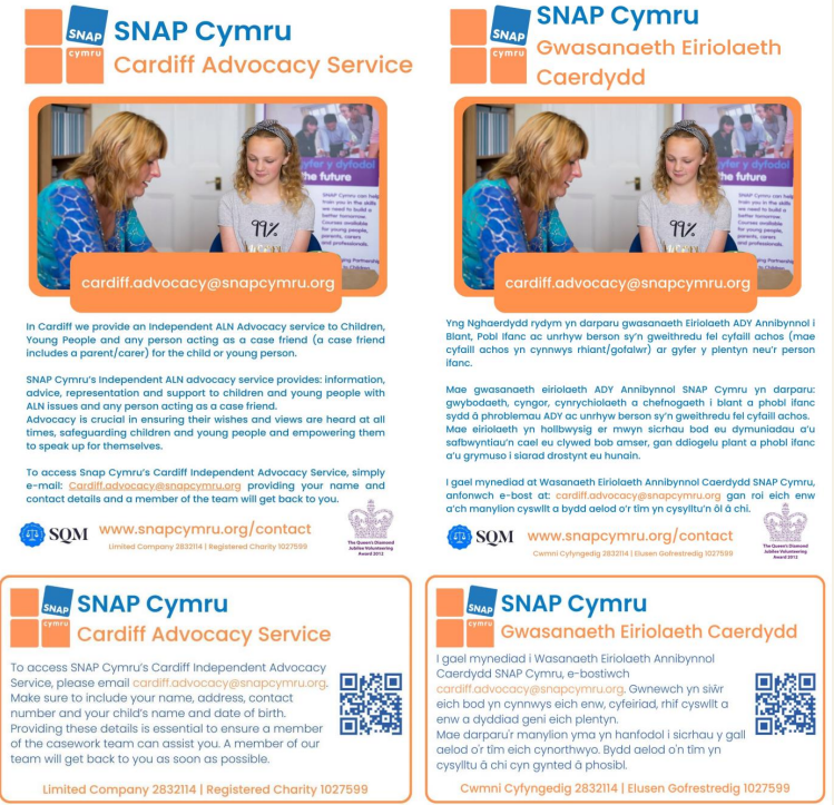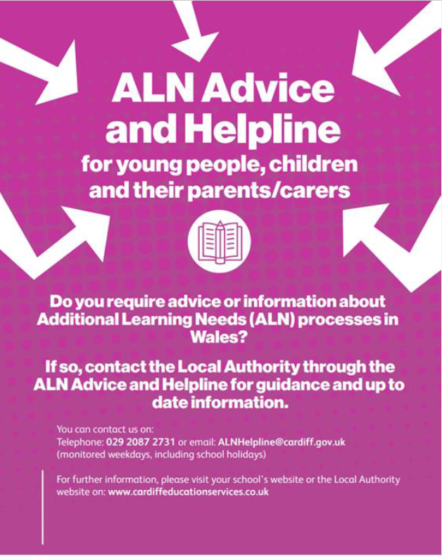 You can contact the helpline on: Telephone: 02920 872 731 or email: ALNHelpline@cardiff.gov.uk
